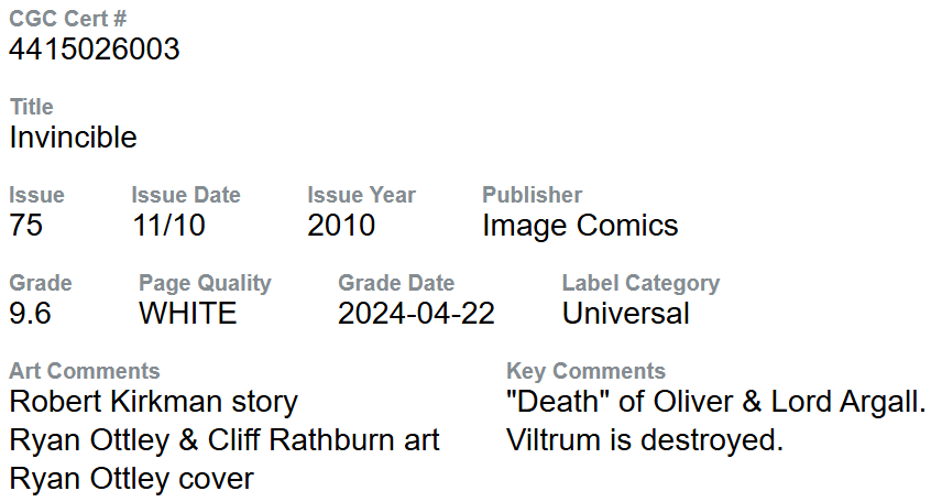INVINCIBLE #75 CGC 9.6 KEY ISSUE