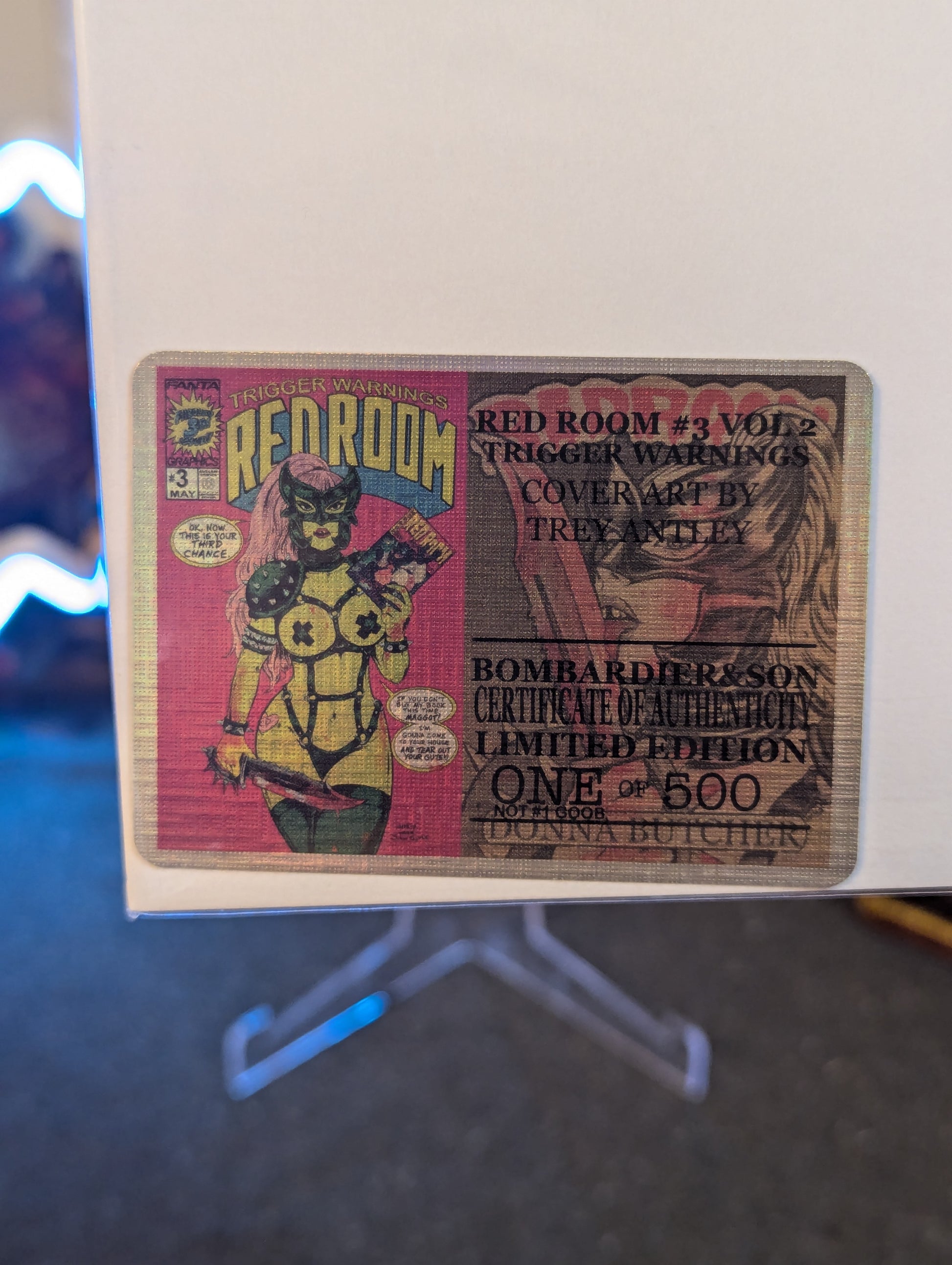 RED ROOM : TRIGGER WARNING #3 from 2022. BOMBARDIER & SON SHE-HULK #1 HOMAGE variant cover with COA. Trey Antley cover artist.